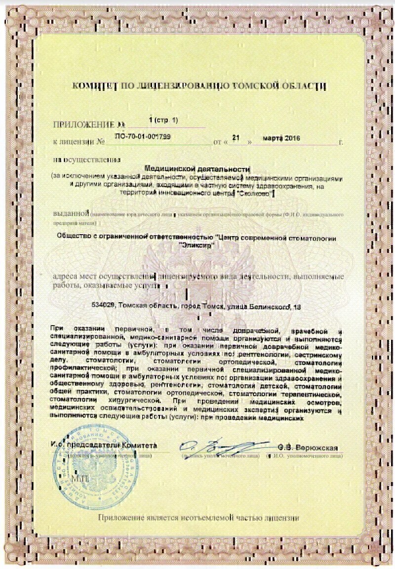 Диапазоны цен на приём врачей и специалистов, услуги и диагностику в центре стоматологии Эликсир на Белинского в Томске.
